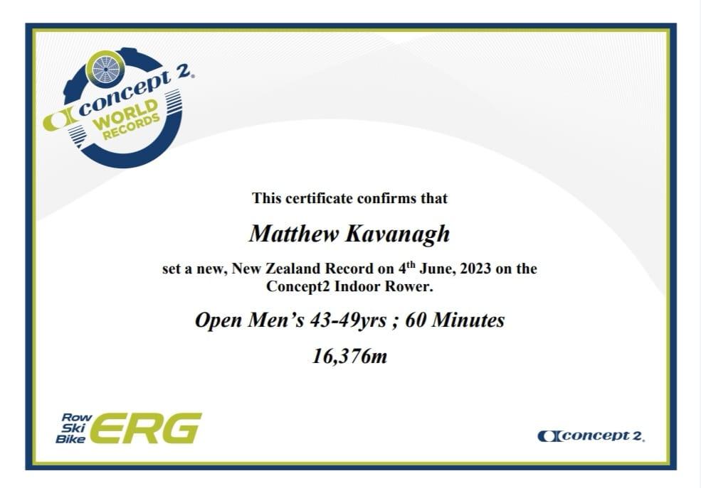 Matt Kavanagh started rowing at the end of 2001 when Brian Hawthorne was doing a project out of North Shore RC and he heard about it. He had done half a novice year at school and always wanted to do it again. Last month Matt broke a New Zealand erg record for the 43-49 age category for 60 minutes rowing 16, 376 meters. So we sought him out for an interview,.