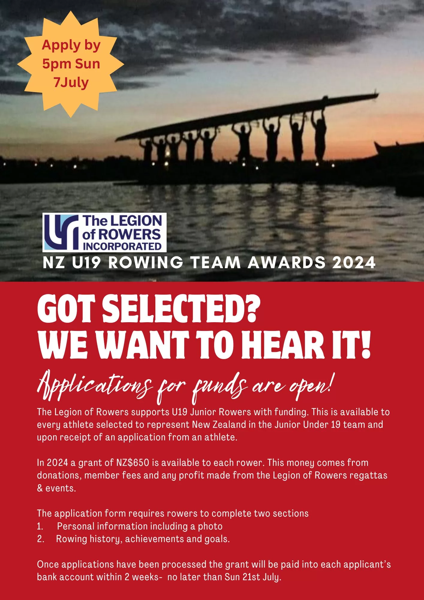 Legion membership dues and profits from our regattas go to support U19 Junior rowing. If you would join the Legion enables more $$ to be made available in future years.